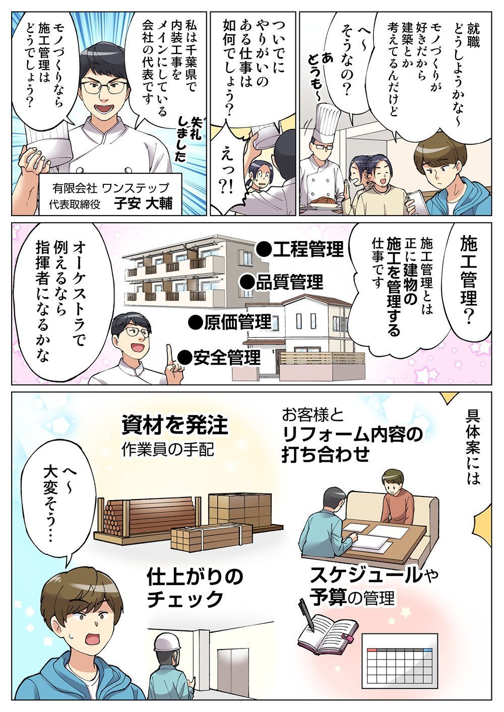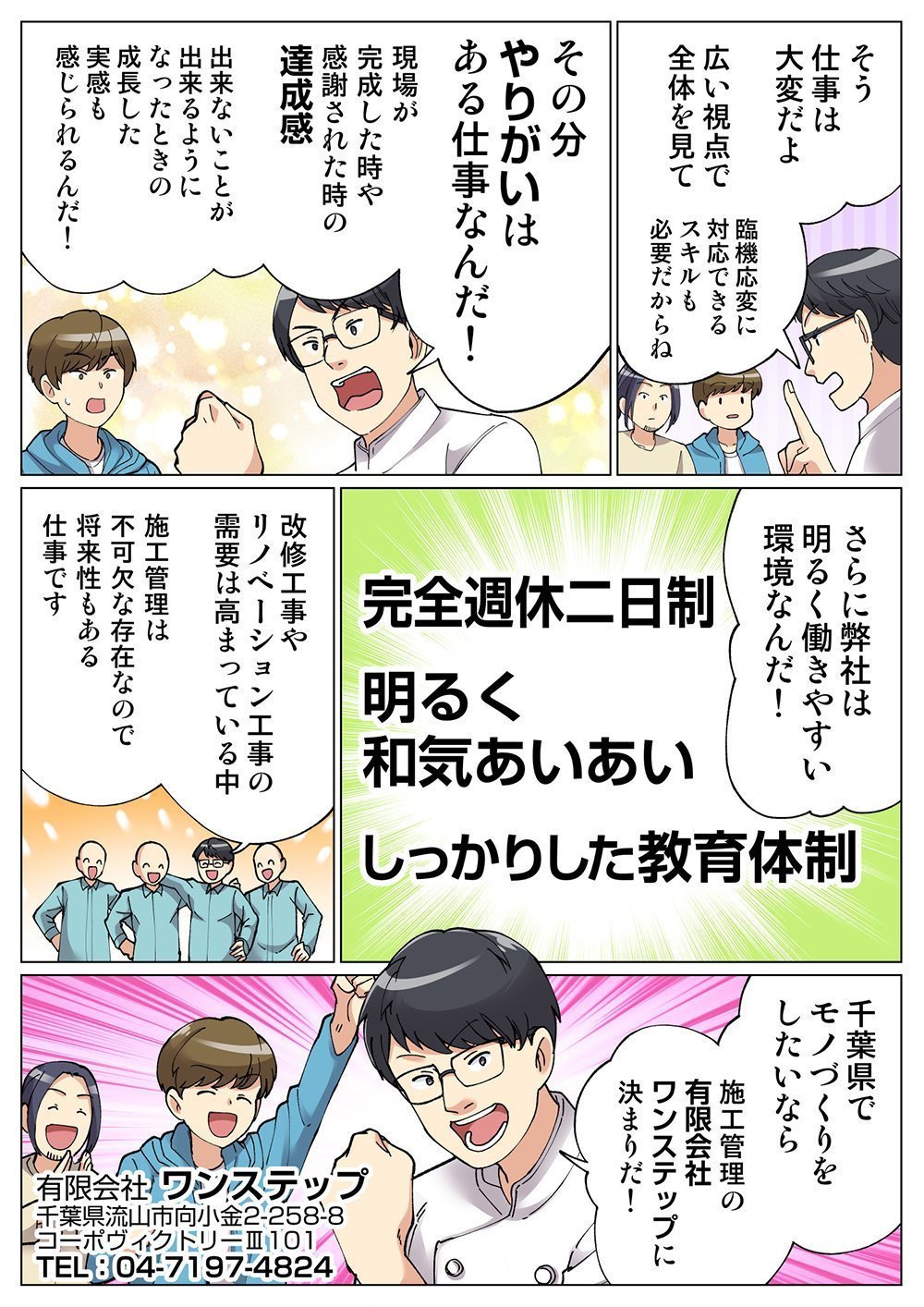 現場を収めた後オーナー様に感謝してもらえる事が多いです。ワンステップの仕事にはお金では得られないような経験をする事ができます。
