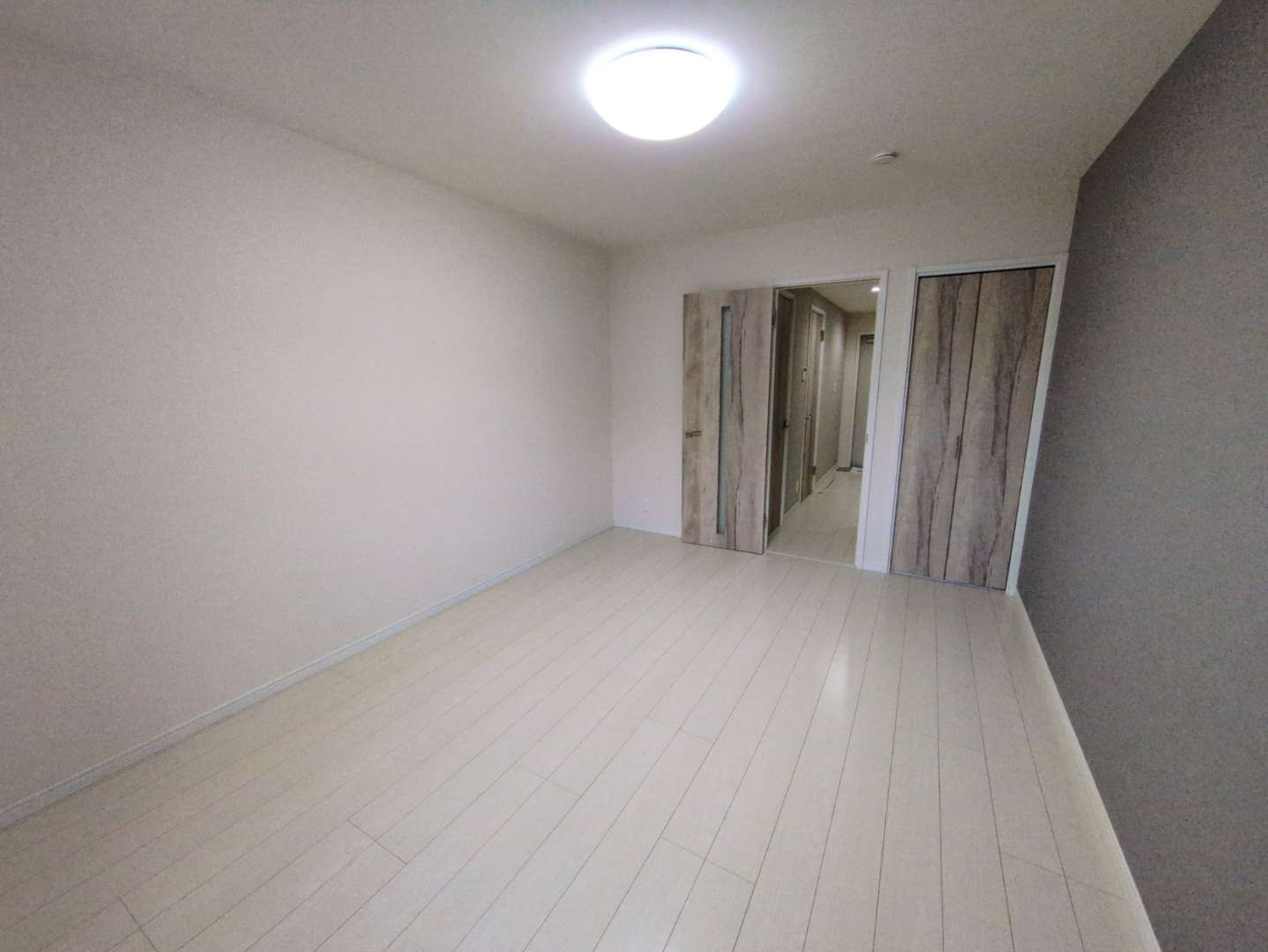 壁一部にアクセントクロスを使用し、