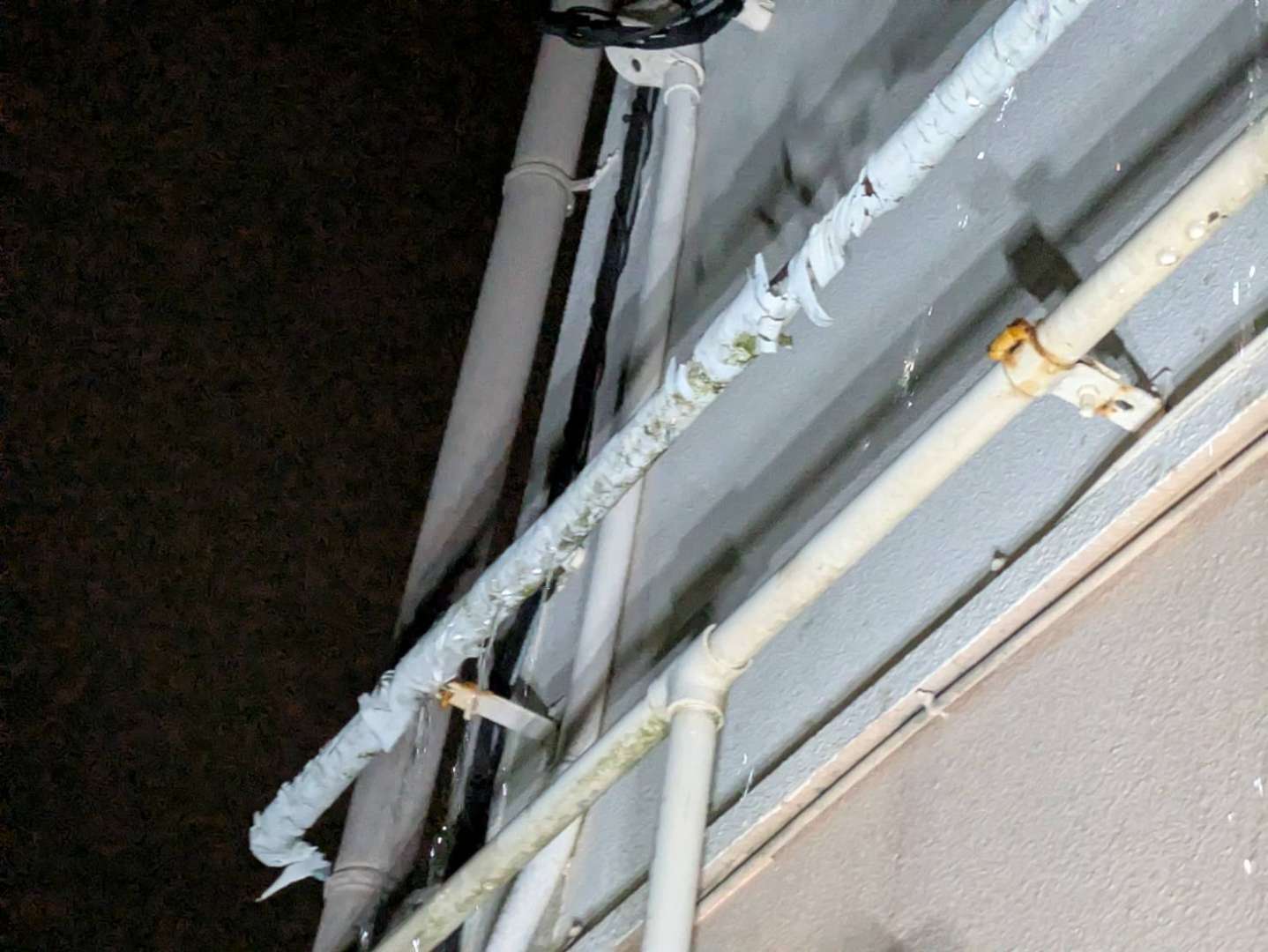 管がむき出していたので保温材を巻き直して凍りにくくなるよう対処してきました。
