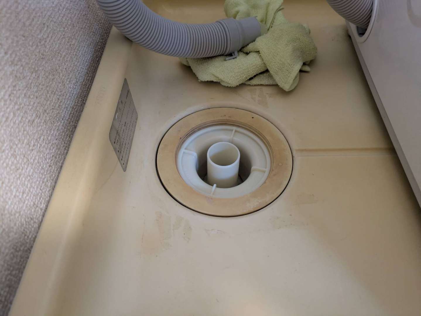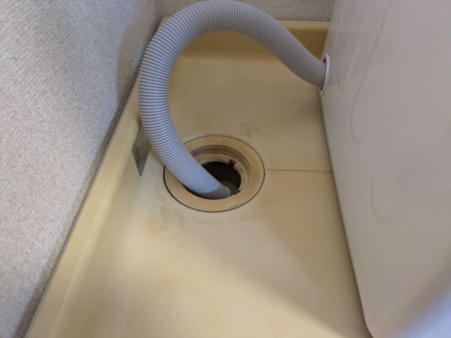 本来ついているべきエルボ(洗濯機の排水ホースと排水口をつなぐ部品)がついておらず、そのまま脱水するとホースが固定されていないため抜けてしまいます💦