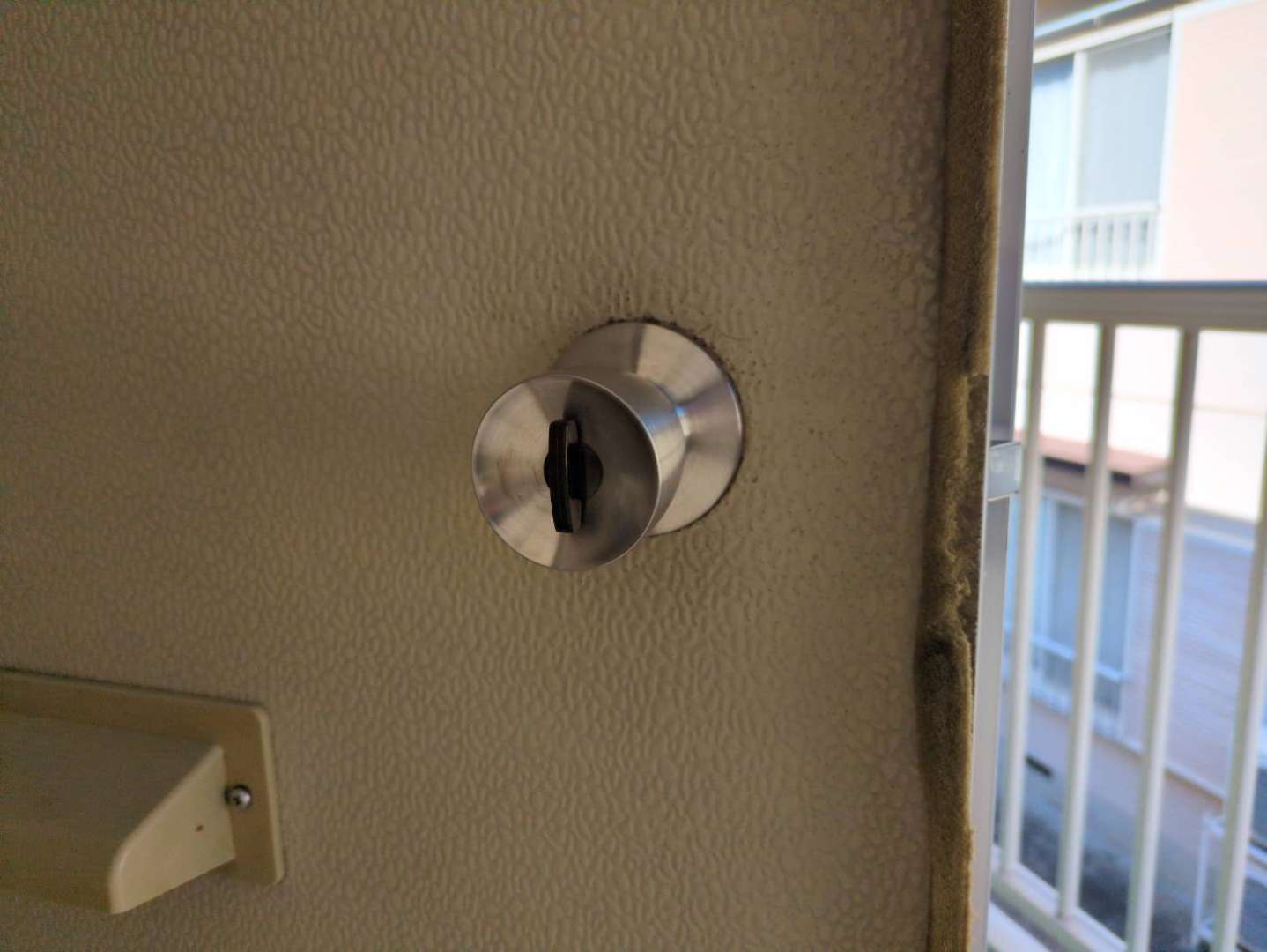 ドアノブと鍵が一体化しているタイプでした。